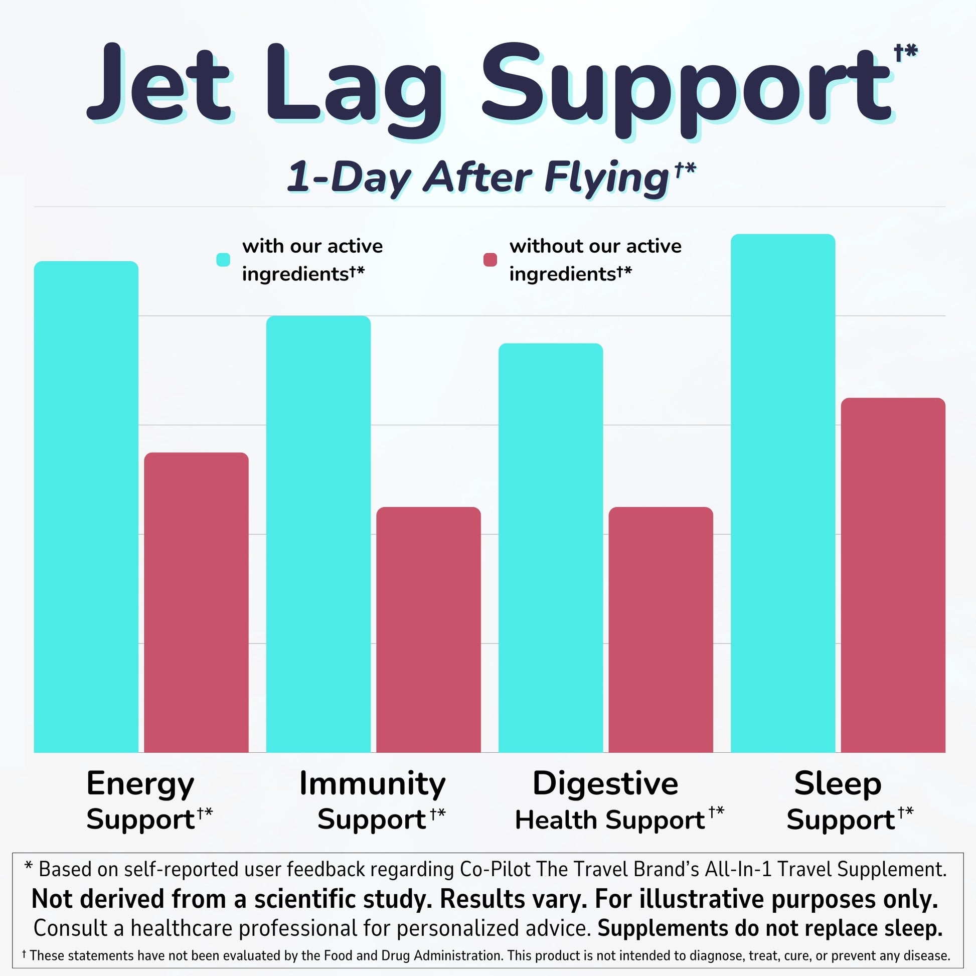 - Beat Jet Lag – Ashwagandha, Rhodiola Rosea, and L-Glycine help regulate sleep patterns and fight fatigue.
